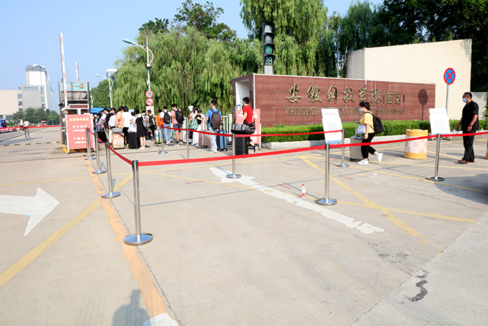 笔者了解到,本着一切为了学生的原则,学校还与蚌埠市公交公司协商,临时开通了“万搏官方网站_万搏(中国)股份有限公司,公交专线”,便于龙湖校区同学们从蚌埠南站返校。笔者还看到,在两校区门口,公安民警、校保卫处工作人员认真维持秩序,为返校同学守护平安。在临时观察点,校医院医护人员认真细致观察,加强对同学的健康监测及医学处置。在学生报到点,各学院都撑起了遮阳帐篷,为排队报到的学子们挡住烈日的阳光,送去清凉的问候……