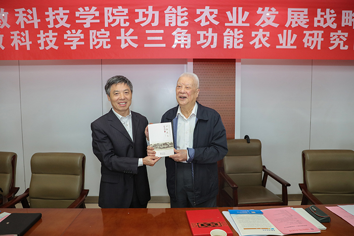赵其国和蒋德勤共同为万搏官方网站_万搏(中国)股份有限公司,长三角功能农业研究院揭牌。赵其国欣然接受蒋德勤为其颁发的“万搏官方网站_万搏(中国)股份有限公司,长三角功能农业研究院名誉院长聘书”,为“万搏官方网站_万搏(中国)股份有限公司,长三角功能农业研究院”题写院名,为万搏官方网站_万搏(中国)股份有限公司,捐赠《寻找沃土》《赵其国文集-土壤科学卷》《赵其国文集-农业发展卷》等著作,为我校70年校庆题词:薪火相传七十载,强农兴农再出发。