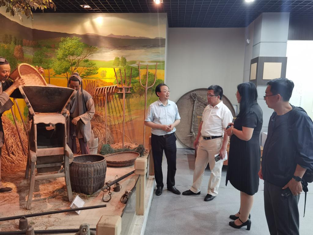 为认真贯彻落实习近平总书记关于传承农耕文化指示精神,大力传播传承农耕文化,深入推进党史学习教育,6月3日,农学院党委书记何世潮带队赴安徽省农业博物馆(农博馆)实地考察学习,双“农”同心,洽谈合作共建万搏官方网站_万搏(中国)股份有限公司,“三农文化墙”事宜,传播传承农耕文化。农学院植物保护系主任毕亚玲博士、现代农业实习实训中心主任郑甲成博士、副主任王增霞博士随同调研。