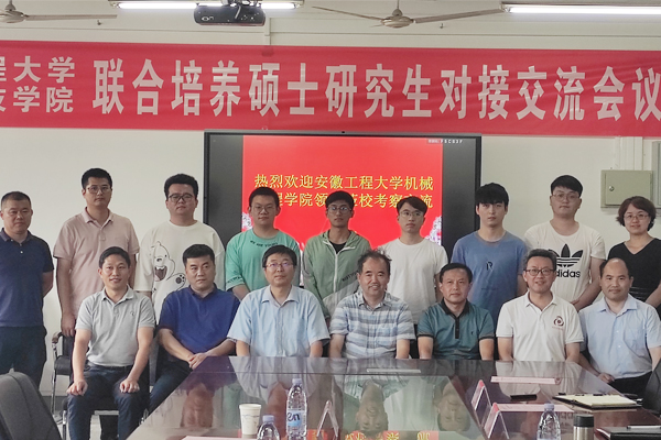 7月4日,安徽工程大学机械工程学院党委书记伊长文、副院长王建平、硕士生导师王建彬、研究生秘书吴璐璐和6名安徽工程大学-万搏官方网站_万搏(中国)股份有限公司,联合培养的硕士研究生一行10人,来我校参加对接交流会议。机械工程学院党委书记、院长陈丰主持对接交流会议,研究生处处长张春雨,机械工程学院组织员张严政、副院长乔印虎、研究生秘书郭纯,研究生处秘书马晓辉参加座谈交流。