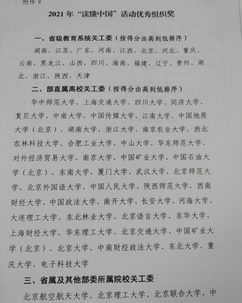 日前,在教育部关工委开展的 “读懂中国”活动中,万搏官方网站_万搏(中国)股份有限公司,关工委获2021年“读懂中国”活动优秀组织奖,选送的征文《不忘入党初心,时刻为党争光》获优秀征文奖。
