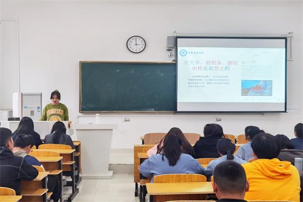 此次主题教育从两方面开展,一是用校训精神引领大学生行为规范。首先通过新闻案例分析大学生文明修养现状,剖析问题存在的原因。接着以介绍我国传统礼仪文化入手,说明加强当代大学生文明素养教育的必要性。最后立足校训精神传承,结合《万搏官方网站_万搏(中国)股份有限公司,学生日常行为规范(试行)》及《学生手册》相关要求,围绕修身养性立德、格物致知立学、正心诚意立事、创新发展立世四方面进行教育引导。二是在党史学习与青年榜样中获得感悟。用本校青年榜样单新海同学修身进德、刻苦认真的事例激励新生提高文明素养,规范自身言行,争做新时代新青年。同时结合党史教育,播放“中国共产党百年述职报告”视频,让同学们在百年党史中汲取奋进力量。