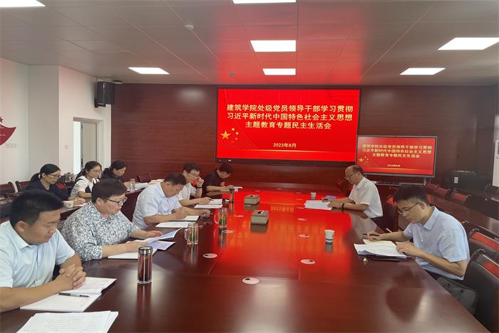 8月31日下午,建筑学院在龙湖校区尚行楼A301会议室召开处级党员领导干部学习贯彻习近平新时代中国特色社会主义思想主题教育专题民主生活会,校党委委员、副院长王孝义、校党委办公室、校长办公室、法治办公室副主任李吉庆到会指导。学院处级党员领导干部、党委委员和党员群众代表参加会议。会议由建筑学院党委书记傅友福主持。