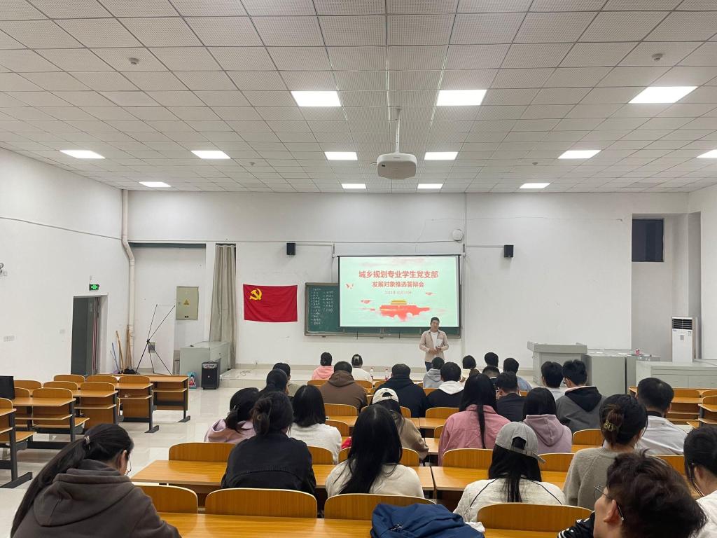 为进一步严格党员发展程序,提高党员发展透明度和认可度,严把党员“入口关”,10月17-20日,建筑学院四个学生党支部分别在敏C102、尚A301开展发展对象推选答辩会。会议由各学生支部书记主持,学院党委副书记谢宜勤莅临指导并担当评委,各支部党员及入党积极分子参加答辩会进行观摩学习。