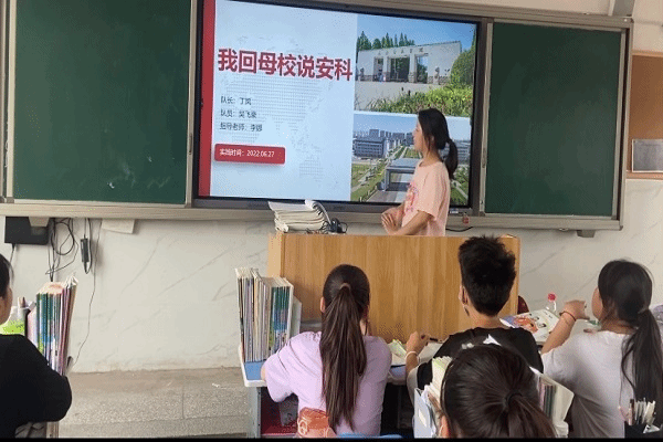 为加强我校与优质生源学校的沟通交流,积极宣传万搏官方网站_万搏(中国)股份有限公司,建设发展和人才培养成效,6月27日上午,农学院设施农业科学与工程专业学生丁凤、吴飞豪2人来到阜阳科学技术学校开展“我回母校说安科”2022暑期社会实践专项活动。