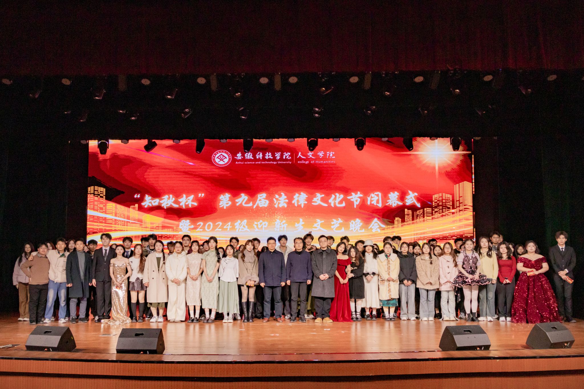 12月7日晚,人文学院在大学生活动中心举办“知秋杯”第九届法律文化节闭幕式暨2024级迎新生文艺晚会。安徽知秋律师事务所主任、首席合伙人宫鉴和执行主任、高级合伙人耿晓兵,人文学院党政领导、教师代表、全体辅导员出席,2024级全体同学和部分老生代表参加。