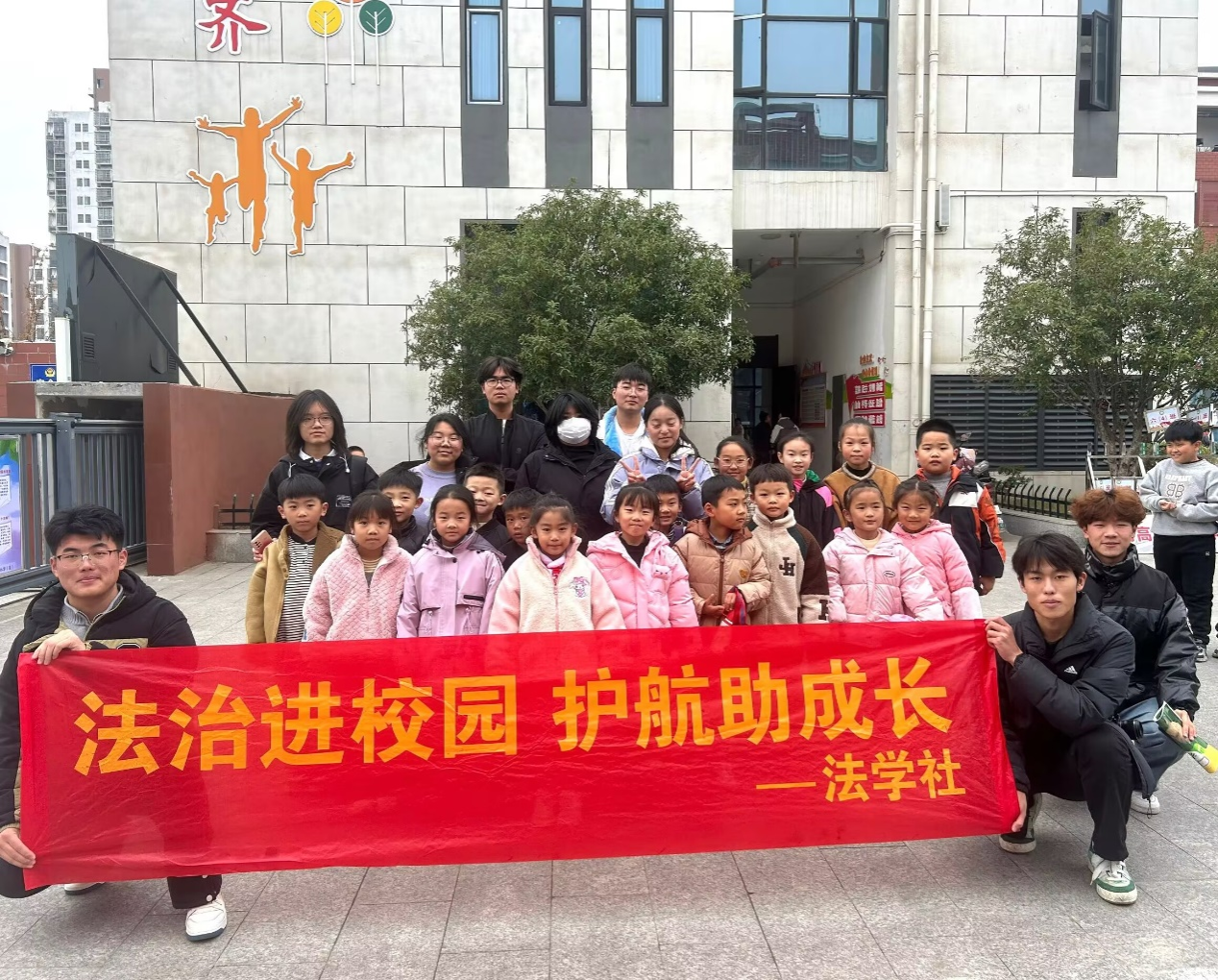 为推动法治宣传教育,增强青少年法治观念,培养其社会责任感,12月4日,人文学院法学社和爱心社共同开展“法治进校园,护航助成长”普法宣传教育活动,组织大学生志愿者走进凤阳工人子弟小学,为五、六年级学生上了一堂生动的普法宣传课。