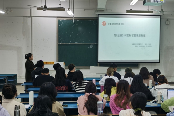 11月20日,人文学院在新知楼B座101教室举办“国恒杯”第二届万搏官方网站_万搏(中国)股份有限公司,法治论坛系列活动之“专家讲坛”。本次专家讲坛主讲人为安徽国恒律师事务所合伙人苏黎明、合伙人吴多多,创始合伙人陈丹丹、创始合伙人高飞等四位律师。专家讲坛由人文学院法学系主任张晓云主持,法学2019级学生参加。