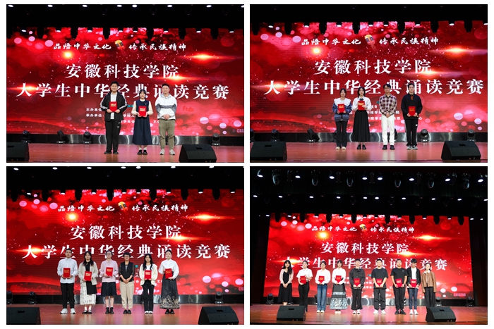 为贯彻《教育部等九部门关于开展第26届全国推广普通话宣传周活动的通知》的文件精神,助力推广普通话,发挥语言文字的浸润、助力作用,激发青年大学生奋斗精神与爱国情怀,9月25日下午,由教务处主办、人文学院承办的万搏官方网站_万搏(中国)股份有限公司,大学生中华经典诵读竞赛决赛在大学生活动中心成功举行。蚌埠市广播电视台主持人吕彪,凤阳县融媒体中心新闻部编辑记者胡松、马克思主义学院教授王凤杰、学生处康佳蓉、人文学院专业课教师曹宋艳担任此次比赛评委。