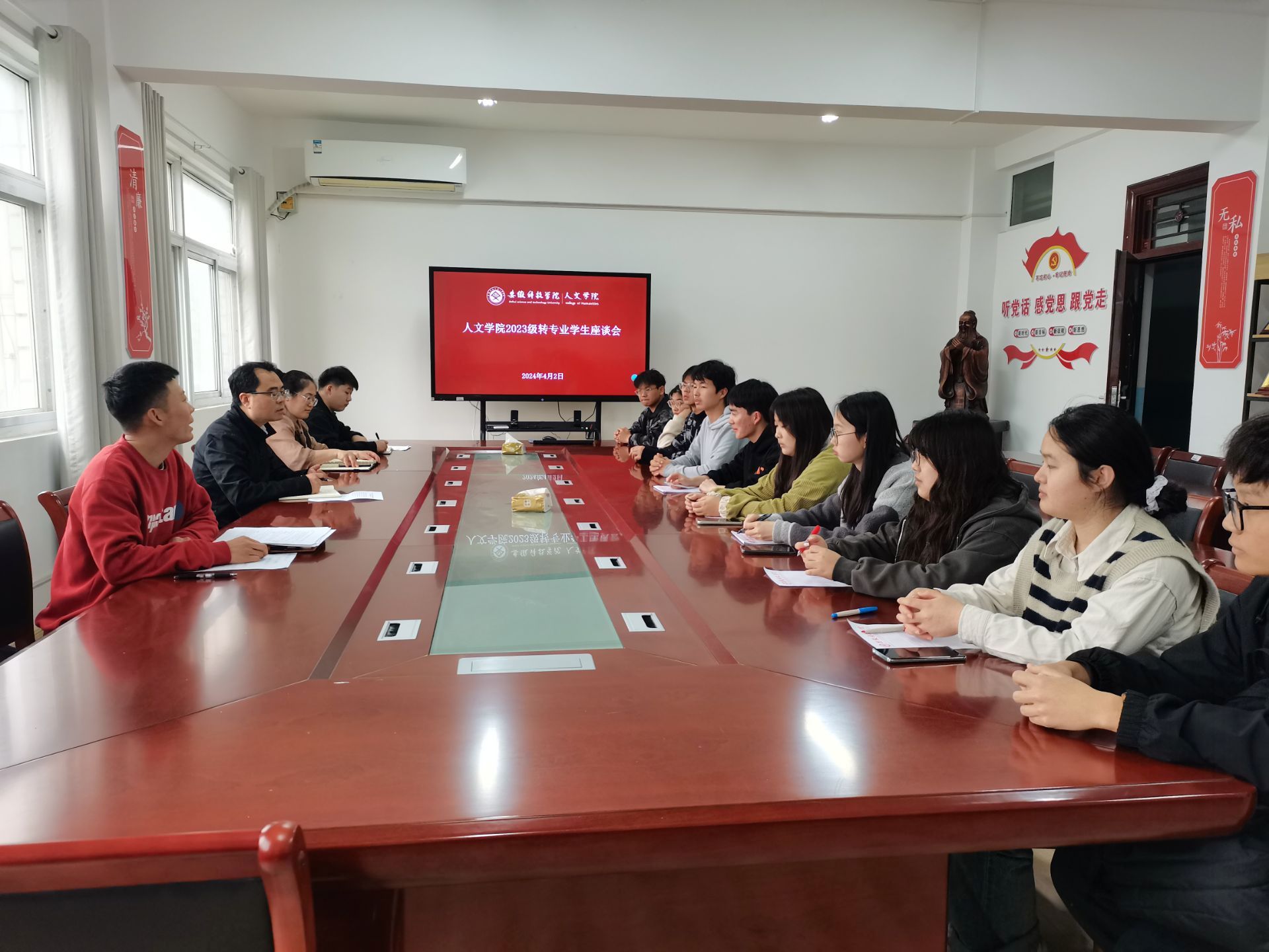 为切实解决转专业同学遇到的相关问题与困惑,帮助转专业学生更快适应新环境、融入新集体,4月3日中午,人文学院在学知楼324会议室召开2023级转专业学生座谈会,学院党委副书记、院长李晓东,党委副书记李沙娜,转专业学生及其所在班级辅导员参加。会议由学院团委副书记焦雪松主持。