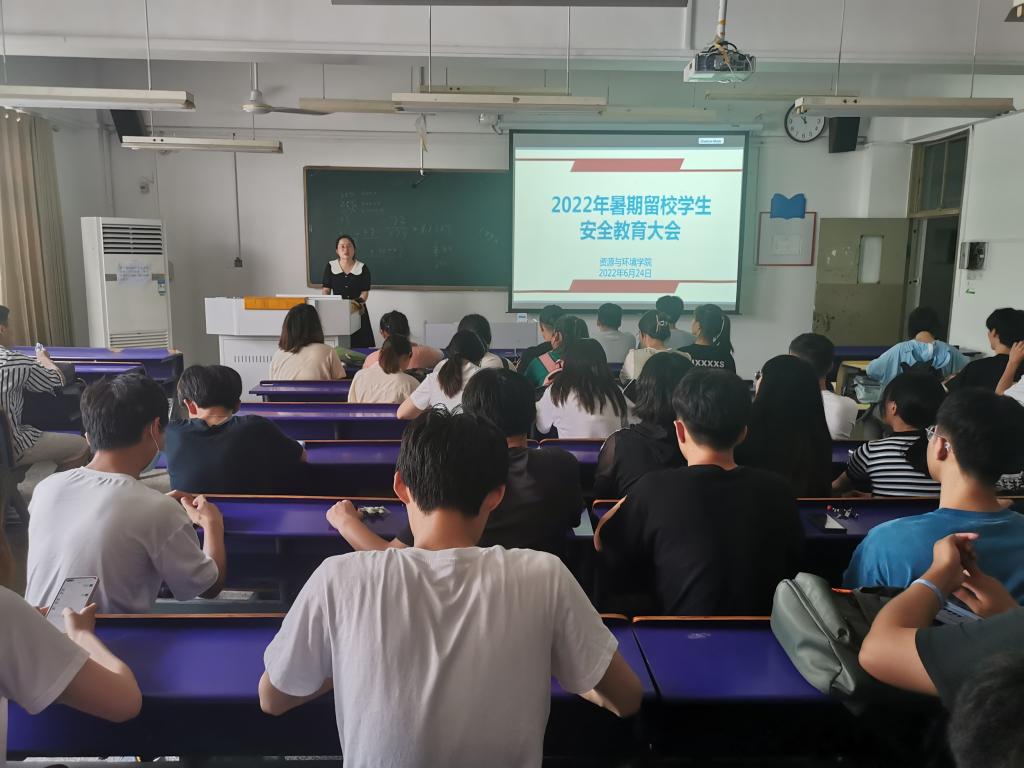 为切实做好暑期学生安全工作,维护留校学生的学习生活秩序,6月24日,资源与环境学院分别于求知楼B204、207召开2022年暑期留校学生安全教育大会。党委副书记沈树周、团委副书记杨小晗出席,全体留校学生参加会议。