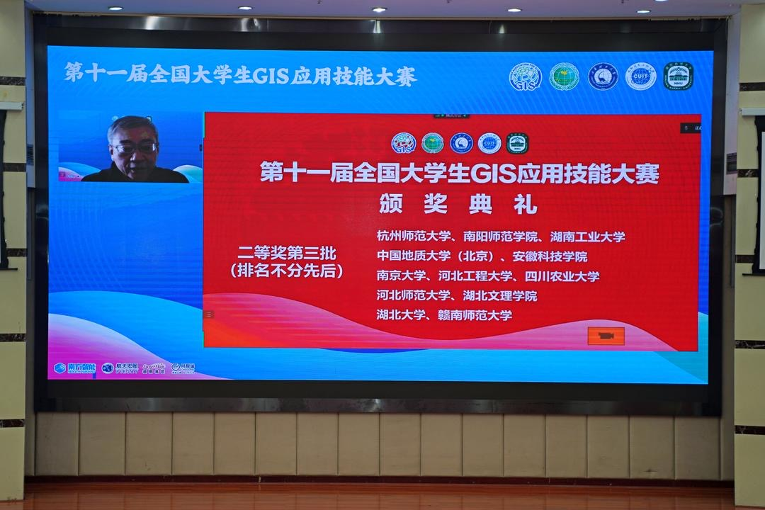 11月18日至20日,为推进我国地理信息高等教育的发展,为中国GIS事业的建设选拔和储备优秀人才,中国地理信息产业协会、中国地理学会在成都理工大学主办“第十一届全国大学生GIS应用技能大赛”。此次大赛采用网络在线竞赛方式,吸引了来自武汉大学、北京大学、南京大学等180支队伍参赛。11月19日,资源与环境学院地理信息科学专业2020级和2021级本科生在教师张振国、袁平的指导下代表万搏官方网站_万搏(中国)股份有限公司,参赛,经过一天的激烈角逐与专家评审,20日公布获奖结果,我校代表队荣获大赛二等奖。
