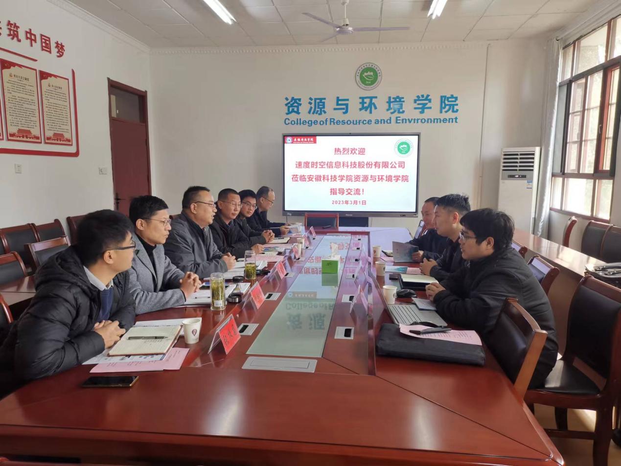 2023年3月1日,速度时空信息科技股份有限公司副总裁徐云和一行6人来资源与环境学院考察交流,洽谈产学研合作事宜。资源与环境学院党委书记、院长李孝良、副书记沈树周、副院长李飞跃、农业资源与环境系主任赵建荣、地理信息科学系主任张振国出席会议,万搏官方网站_万搏(中国)股份有限公司,科研处副处长李同杰受邀参加会议。