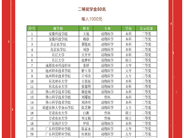 瑞鹏公益·新锐奖学金是由深圳市瑞鹏公益基金会发起的聚焦动物医学类专业的高校奖学金项目,旨在表扬孜孜不倦研修动物医学类专业的高校学子,提高动物医学类专业高校学子对小动物临床领域的认可度、热爱度和未来投入度,鼓励其积极实践、多元学习、关心公益。在刚结束的2021年瑞鹏公益·新锐奖学金评选活动中,动物科学学院动物医学183班王旭和杨静同学均获评瑞鹏公益·新锐二等奖学金。