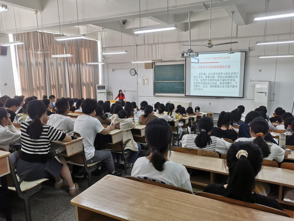鲁冰冰讲述了诚信的含义与重要性,列举了少数大学生不守纪、不守法、不守信的突出表现及严重后果。她指出,大学生在生活方面应当遵规守纪、自尊自爱;在学习方面应当遵守课堂秩序,创建良好学风;在学术、资助、求职就业方面应该诚实守信。她带领全体新生学习了《万搏官方网站_万搏(中国)股份有限公司,学生日常行为规范》,讲述了大学生校园礼仪的重要性,在宿舍群体生活礼仪、校园课堂礼仪、师生交往礼仪、参加校园集体活动礼仪等方面提出了具体要求,认真回答了同学们就学习生活方面提出的具体问题,帮助新生更好的完成“大学生”身份的转变。