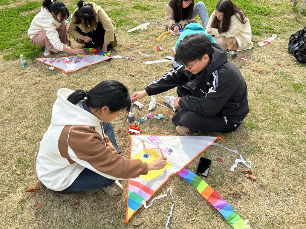 此次活动分为风筝制作、作品打卡和梦想放飞三个环节。上午,同学们来到现场参加风筝的制作,利用活动现场提供的白底风筝与各色颜料,绘制自己喜爱的事物,不一会儿,一个个可爱的形象跃然纸上,这些承载着同学们梦想的风筝即将在蔚蓝色的天空自由飞翔。下午,放风筝活动在东区操场上如期进行,每组学生牵引着风筝在操场上放飞,乘着春风,为天空增添了许多点缀。放飞的是风筝,也是自己的梦想。