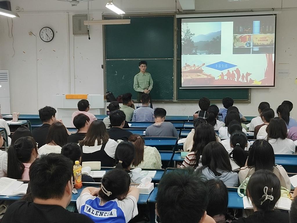 一个故事一堂课,一个典型一面旗。入伍政策宣传活动中,人文学院积极组织各班级观看军旅宣传视频,倾听不同的绿色青春带来的感动。并邀请学院退役复学同学开展退役士兵进课堂,带领同学们走进军营故事、感受军人风采,增强国防观念、鼓舞参军意愿,为同学讲述从军经历,从入伍时间、条件要求、优惠政策、退役待遇等方面详细讲解了大学参军入伍的各方面问题,并与同学交流互动,答疑解难。同时,人文学院辅导员深入寝室向毕业生宣传《大学生应征入伍“明白卡”》,进一步讲解大学生入伍流程和相关政策。