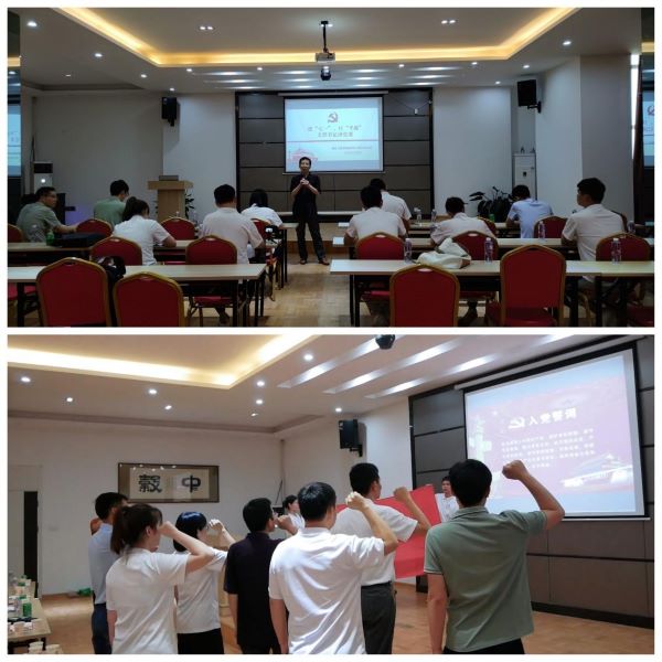 学院研究生党支部书记桑宏庆为实践团、公司与会人员讲授党课,并同企业党员们一道开展了一次生动的主题党日活动。重温入党誓词,以学为基,传承经典,初心使命“落地开花”。桑宏庆表示,我们要发扬团结协作精神,提高党性修养,坚定理想信念,听党话跟党走。