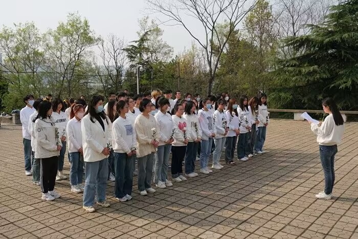机械工程学院2022级机械设计制造及自动化专业、工业设计专业全体同学在清明当天开展“清明祭英烈,共筑爱国情”的主题团日活动。他们手持白菊,向为国牺牲的烈士三鞠躬,表达对革命先烈最崇高的敬意。在烈士墓碑前打扫、擦拭墓碑,以此表达并寄托同学们对先烈们的哀思和敬仰。