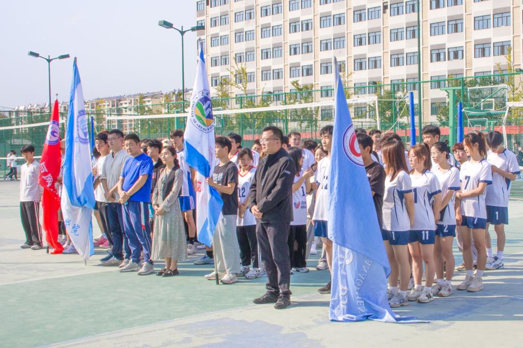 校体育教学部主任何俊如、校团委书记张聪、校体育教学部党总支副书记(主持工作)王松华、校团委副书记王乐、2023年大学生排球联赛裁判长李影出席开幕式。