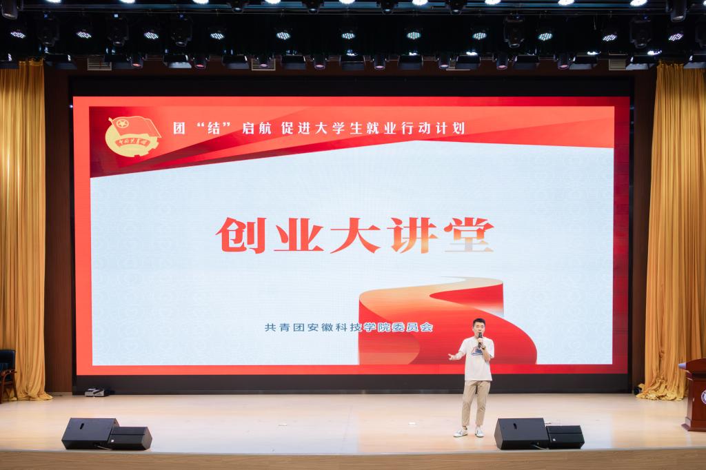 10月18日,我校优秀校友安徽省大学生就业“引航员”许胜胜走进青马课堂,以“创业之路,无问西东”为题,与龙湖校区现场300余名青马学员分享他的创业故事。