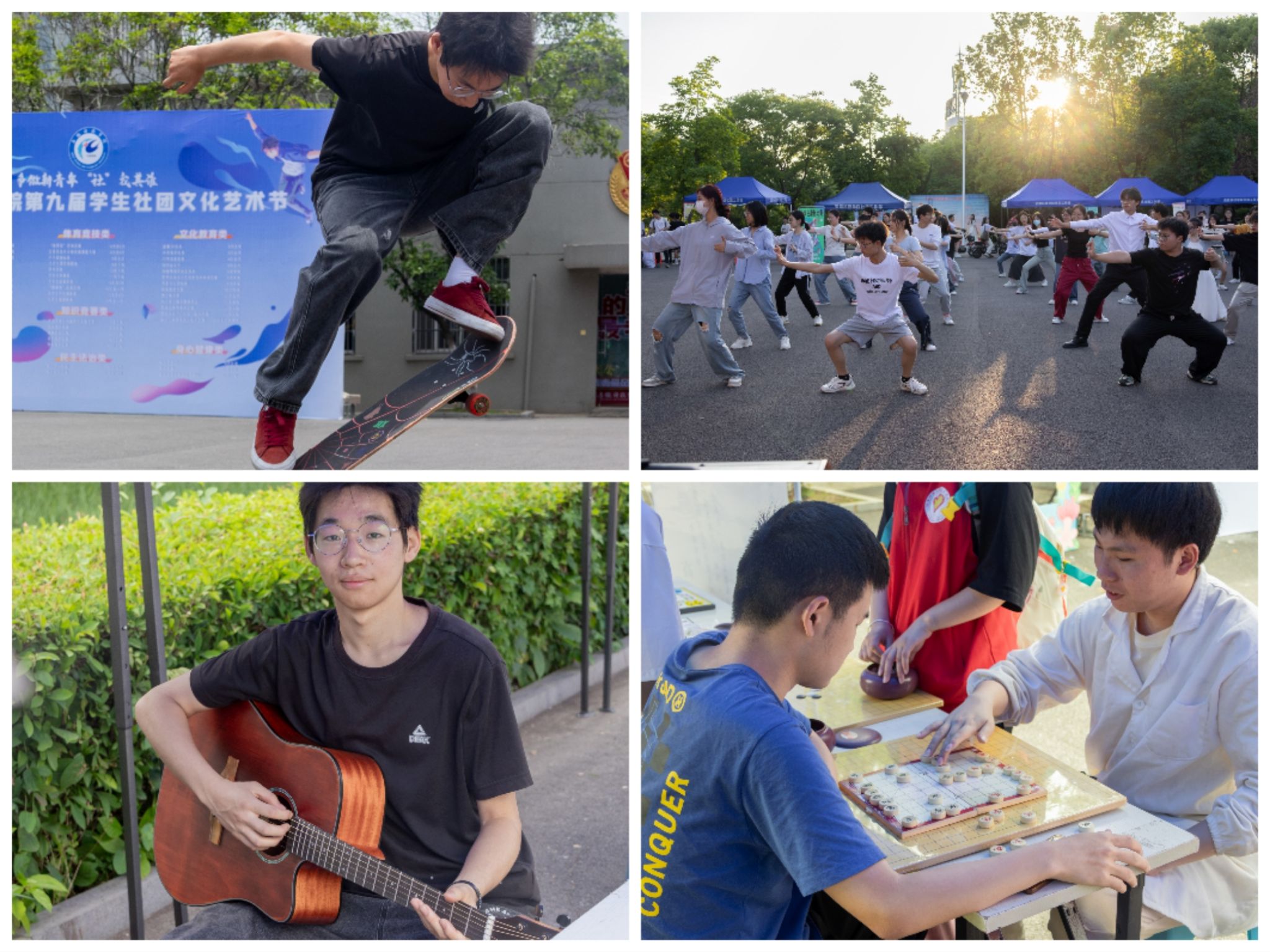 来自19个社团的展示竞相绽放,凤画协会与书美协会用细腻的笔触勾勒出了一幅幅精美的书画,大学生歌手协会的动人歌声飘荡在五四广场上空,武术协会行云流水的传授着八段锦的动作要点,青年志愿者协会的志愿者们用实际行动传递着爱与温暖..... 社团展位互动、文化节演出和集章打卡等多彩活动既将社团文化节的热烈气氛推向高潮,又充分展现了安科青年人全面发展的青春风采,让青年的朝气点燃夏日的安科。