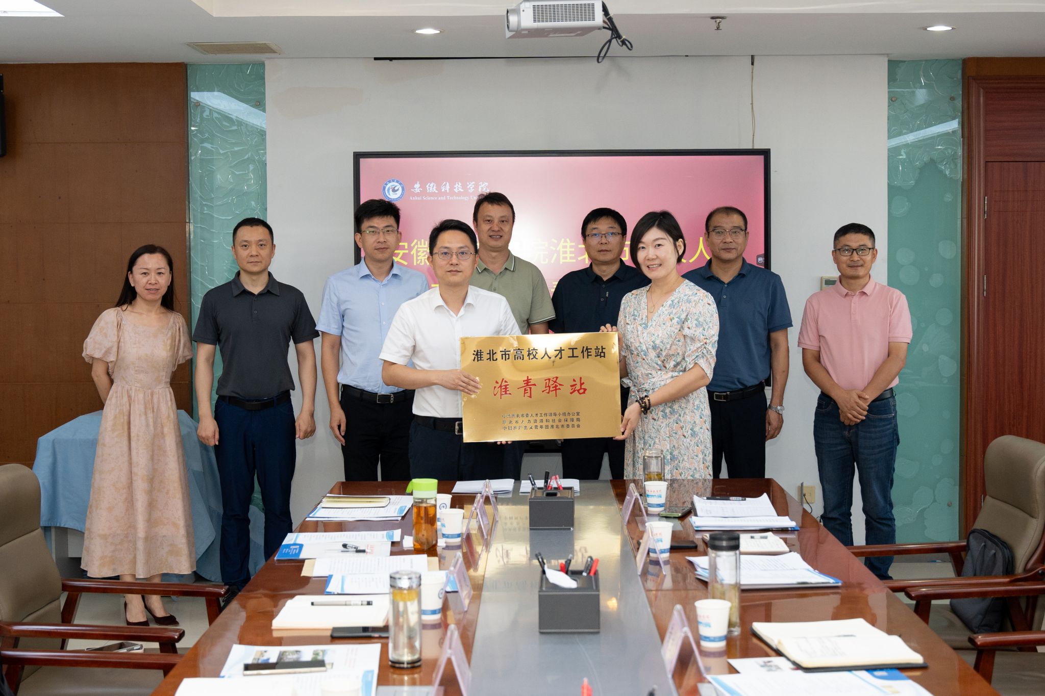 为深入学习贯彻习近平新时代中国特色社会主义思想和习近平总书记关于做好高校毕业生就业工作重要指示精神,深入推进“共青团促进大学生就业行动”,9月9日,我校与淮北市共青团举行共建高校人才工作站(淮青驿站)授牌仪式。团淮北市委书记陈文靖、副书记张超,校党委学工部部长黄立义、党委研工部部长张春雨,招生与就业工作处副处长何晓冬,团委书记张聪等出席活动。淮北市人社局、淮北市杜集区团委负责人以及10余名淮北籍学生代表参加活动。