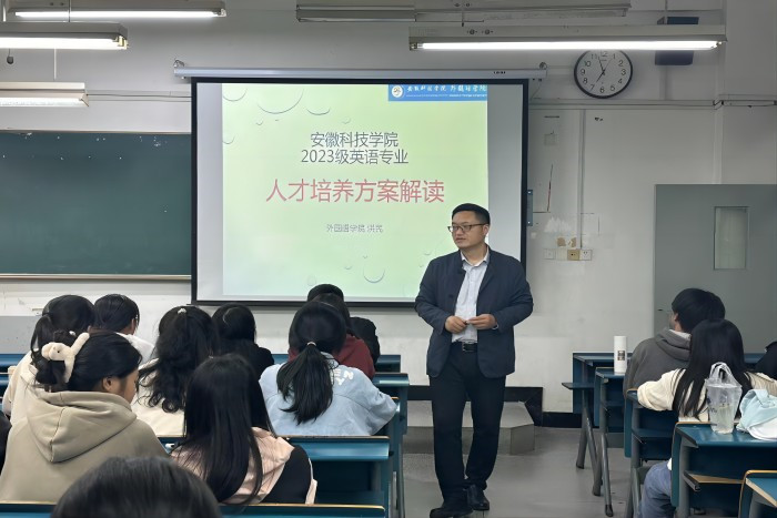 翻译专业人才培养方案由翻译教研室教师王黎韬主讲。王黎韬深入剖析了翻译专业对语言服务能力的重要性,详细介绍了课程设置对语言服务能力提升的目标支撑,结合本校“新文科”建设的规划和大农科的传统优势,重点介绍了翻译专业未来服务社会的两个重要方向“文学翻译”和“农林翻译”。最后,他从“为人”“为学”“为国”等方面对学生如何实现德智体美劳全面发展,成为知识结构优、实践能力强、敬业精神强、创新创业意识强的高素质应用型人才提出明确要求。