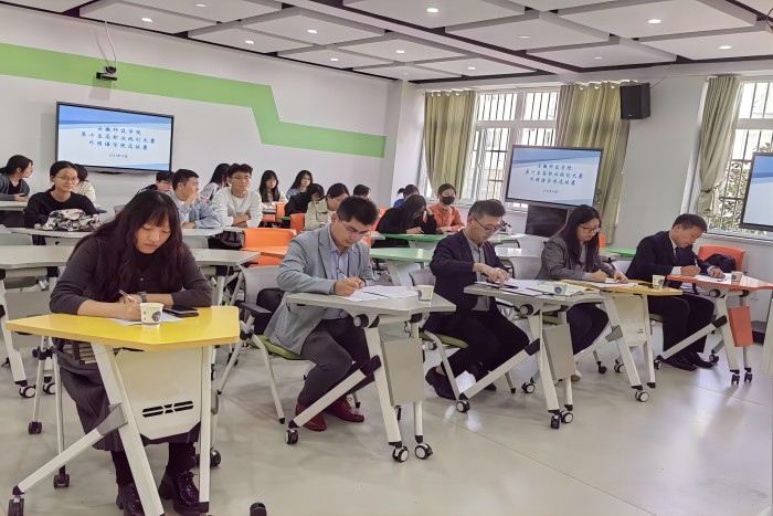 为增强大学生职业规划意识,促进高校毕业生尽早高质量充分就业,外国语学院于10月25日下午在求知楼B301教室举办2023年大学生职业生涯规划大赛。外国语学院党委副书记张海亮、人文学院辅导员鲁冰冰、外国语学院团委副书记宋兵兵、专职辅导员张薇薇、校KAB创业俱乐部主席团张朋等担任比赛评委。
