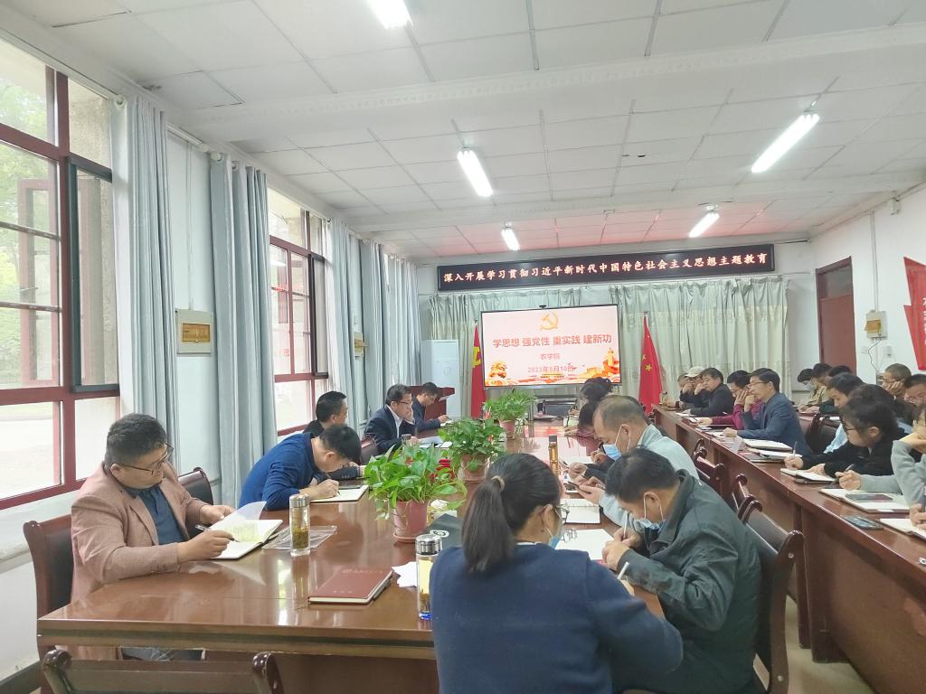 5月10日下午,农学院在学院会议室召开学习贯彻习近平新时代中国特色社会主义思想主题教育工作推进会,对学院主题教育工作进行再动员再部署再强调。学院领导班子成员、全体教工党员和学生党员代表参加会议,为扎实推进“双树双建”工作,农学院教工党外人士列席会议。会议由农学院党委副书记、院长崔广荣主持。
