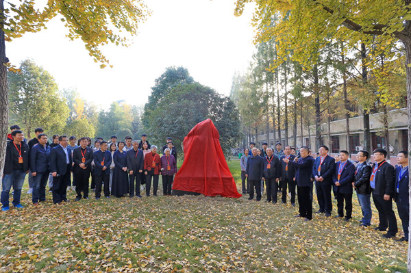 在一片热烈的掌声和欢呼声中,刘正和湖南隆平营销总监刘俊校友等为景观石揭幕。